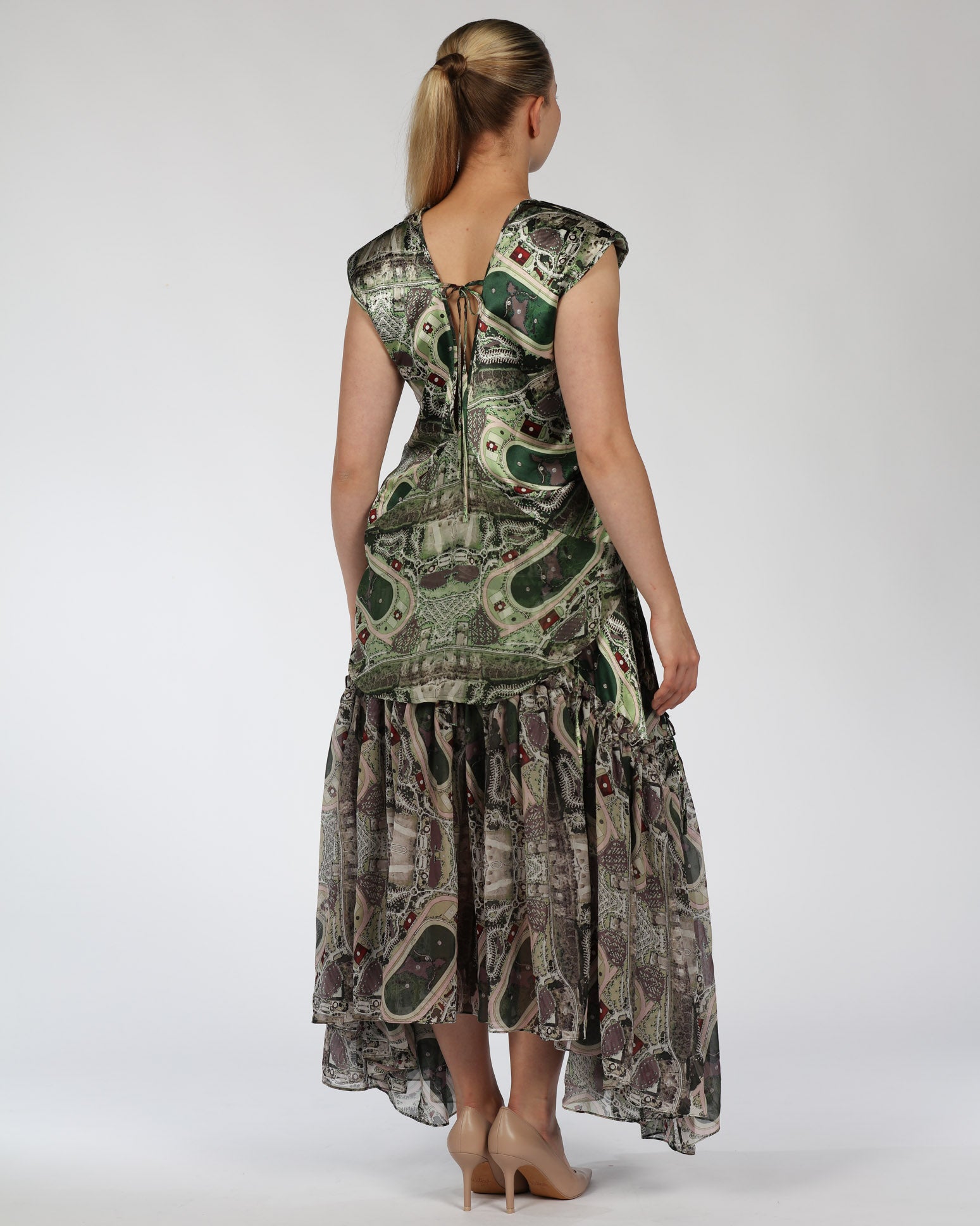 - Tiered skirt with full length finish